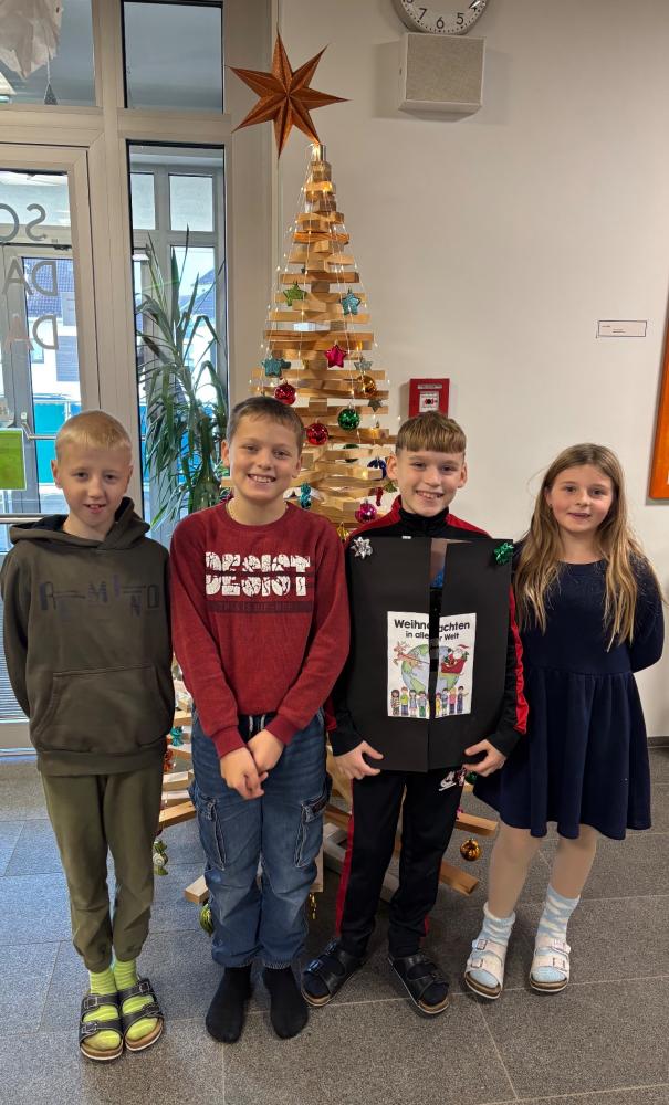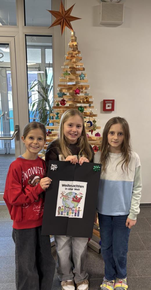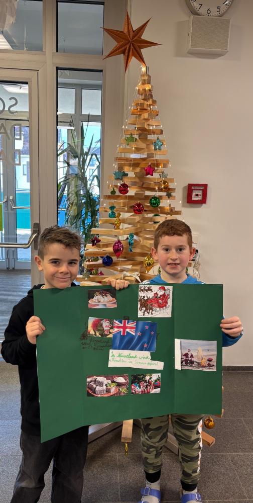Die Schülerinnen und Schüler der 3.Klasse haben sich im Rahmen des Me:Day Projekts angeschaut, wie Weihnachten in aller Welt gefeiert wird. In Kleingruppen wurde zu den selbst ausgewählten Ländern China, Neuseeland, Ukraine, Albanien, Kroatien, USA und Portugal fleißig recherchiert, gebastelt und ein Faltplakat gestaltet. Zum Abschluss des Projektes durfte jede Gruppe ihre Ergebnisse sowie das Faltplakat vor der Klasse präsentieren.